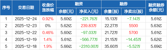 中钢国际:融资净偿还221.76万元,融资余额5.6亿元(12-24)