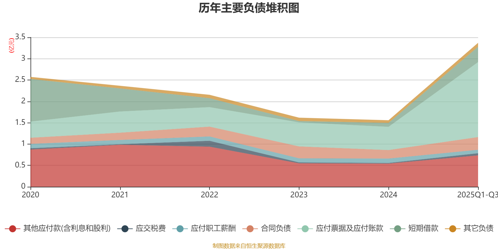 负债重大变化方面,截至2025年三季度末,公司应付票据及应付账款较上年末增加221.81%,占公司总资产比重上升10.04个百分点;短期借款较上年末增加298.03%,占公司总资产比重上升2.28个百分点;其他应付款(含利息和股利)较上年末增加35.45%,占公司总资产比重上升0.93个百分点;合同负债较上年末增加50.14%,占公司总资产比重上升0.6个百分点。