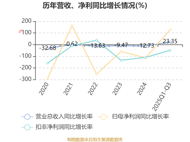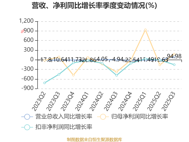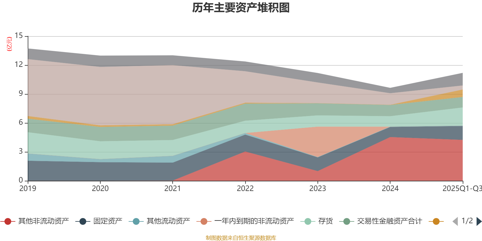 资产重大变化方面,截至2025年三季度末,公司其他非流动资产较上年末减少6.47%,占公司总资产比重下降9.16个百分点;货币资金较上年末减少64.73%,占公司总资产比重下降8.68个百分点;应收票据及应收账款较上年末增加5475.61%,占公司总资产比重上升6.79个百分点;存货较上年末增加74.51%,占公司总资产比重上升5.67个百分点。