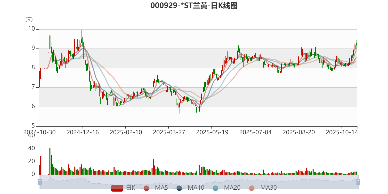以10月29日收盘价计算,*ST兰黄目前市盈率(TTM)约为-33.89倍,市净率(LF)约3.65倍,市销率(TTM)约6.76倍。