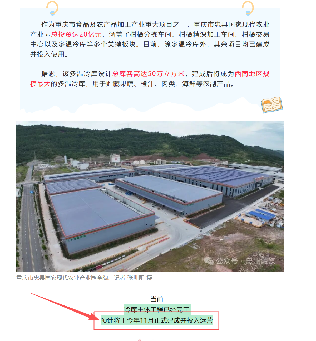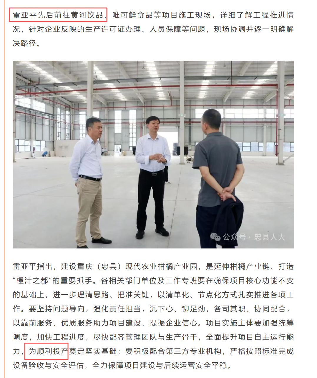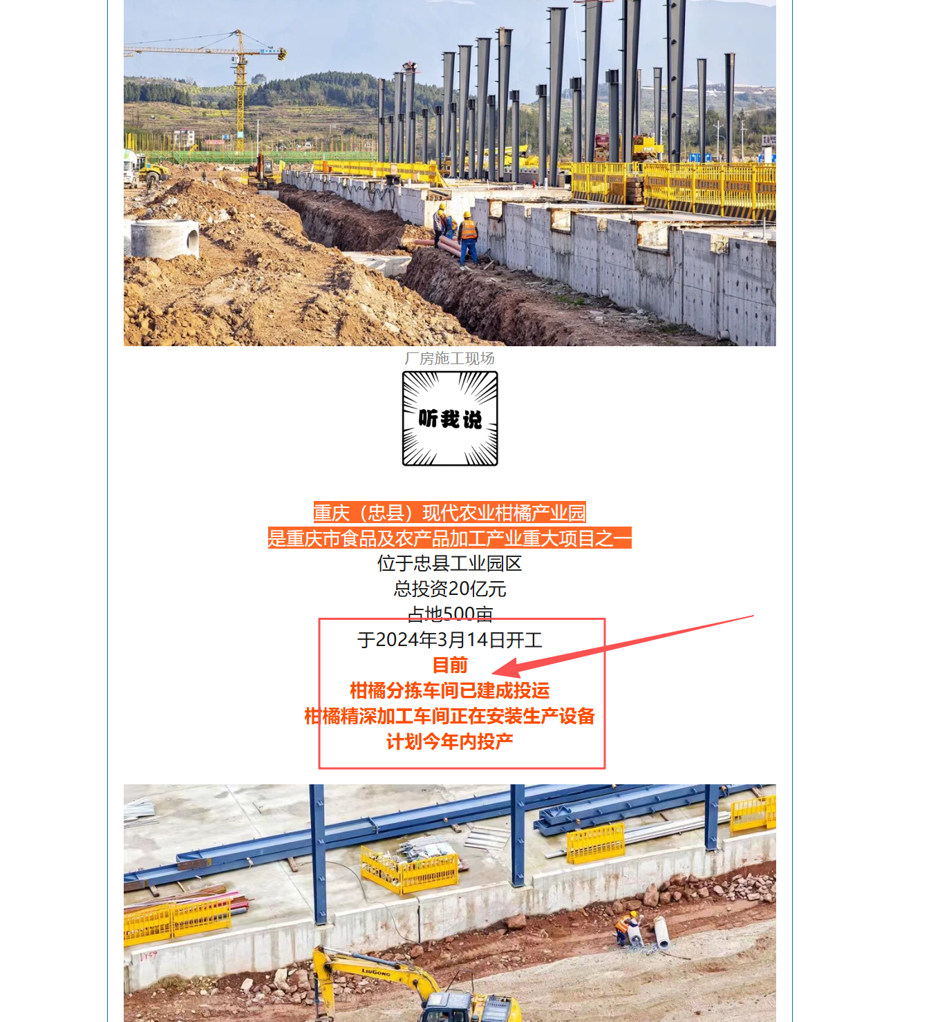 黄河(重庆)饮品持续推进,厂房11月投用,柑橘分拣车间已建成投运~