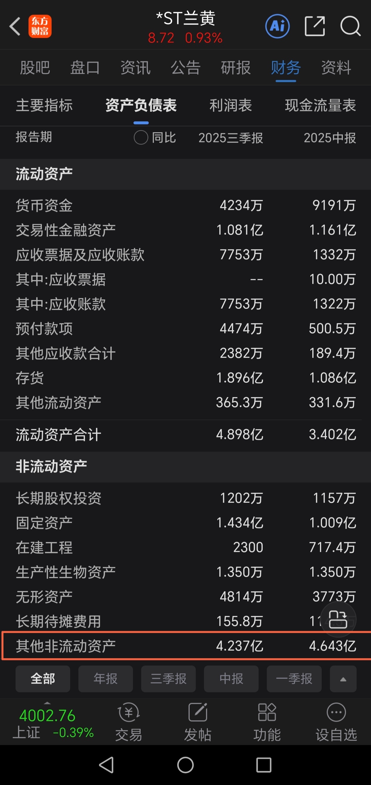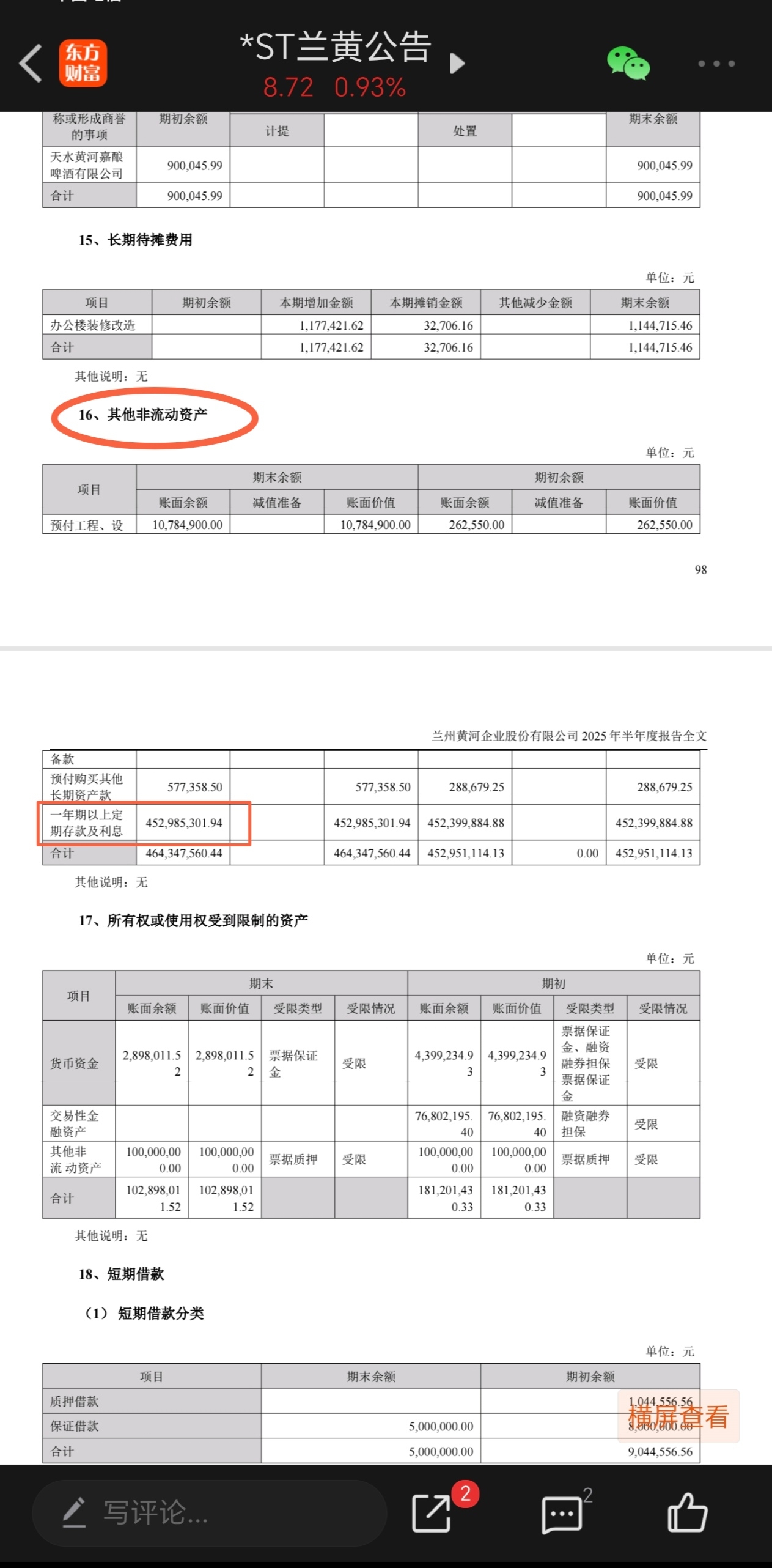 兰黄是ST中大富翁,定期存款高达4.5298亿+货币资金0.4234亿
