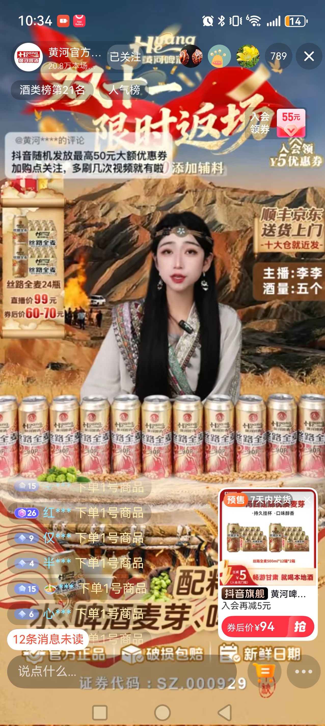 $*ST兰黄(SZ000929)$ 天啊,这些人真的疯了吗,全部都是下单买货的,晚上10点半都有将近800在线观看,进去看了一会儿,下单的人一个接一个,这真是不得了!兰州黄河好起来了,今非昔比了