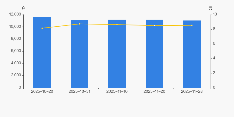 2025年10月20日至今,公司股东户数有所下降,区间跌幅为5.33%。2025年10月20日至2025年11月28日区间股价上涨4.91%。