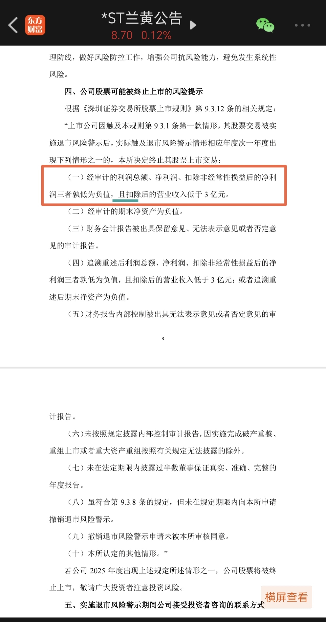 只要今年主营业务收入超3亿,年报没有造假,没有非标,净利润是否亏损都会摘帽,对着公告看仔细,退市风险有几成