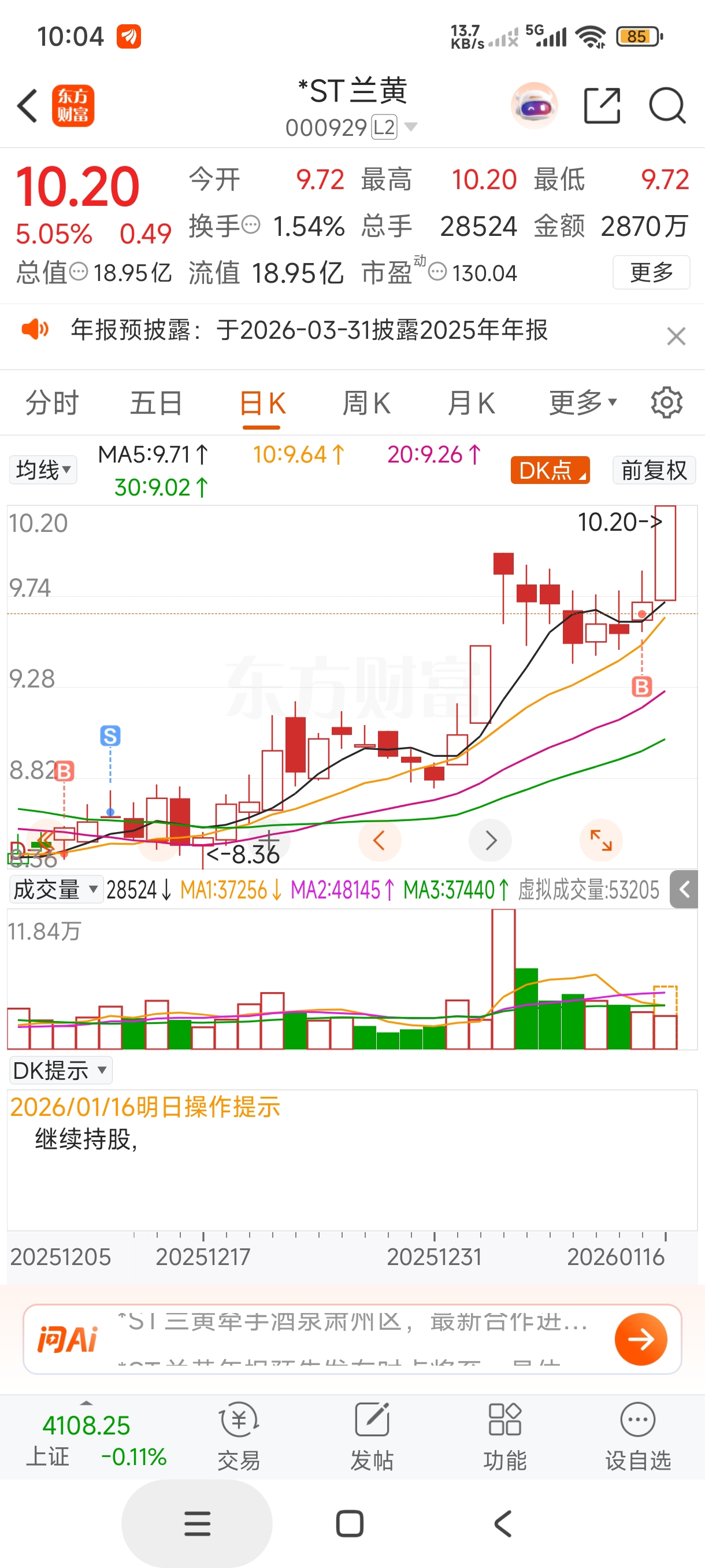 $*ST兰黄(SZ000929)$ 吃你个涨停板太难了