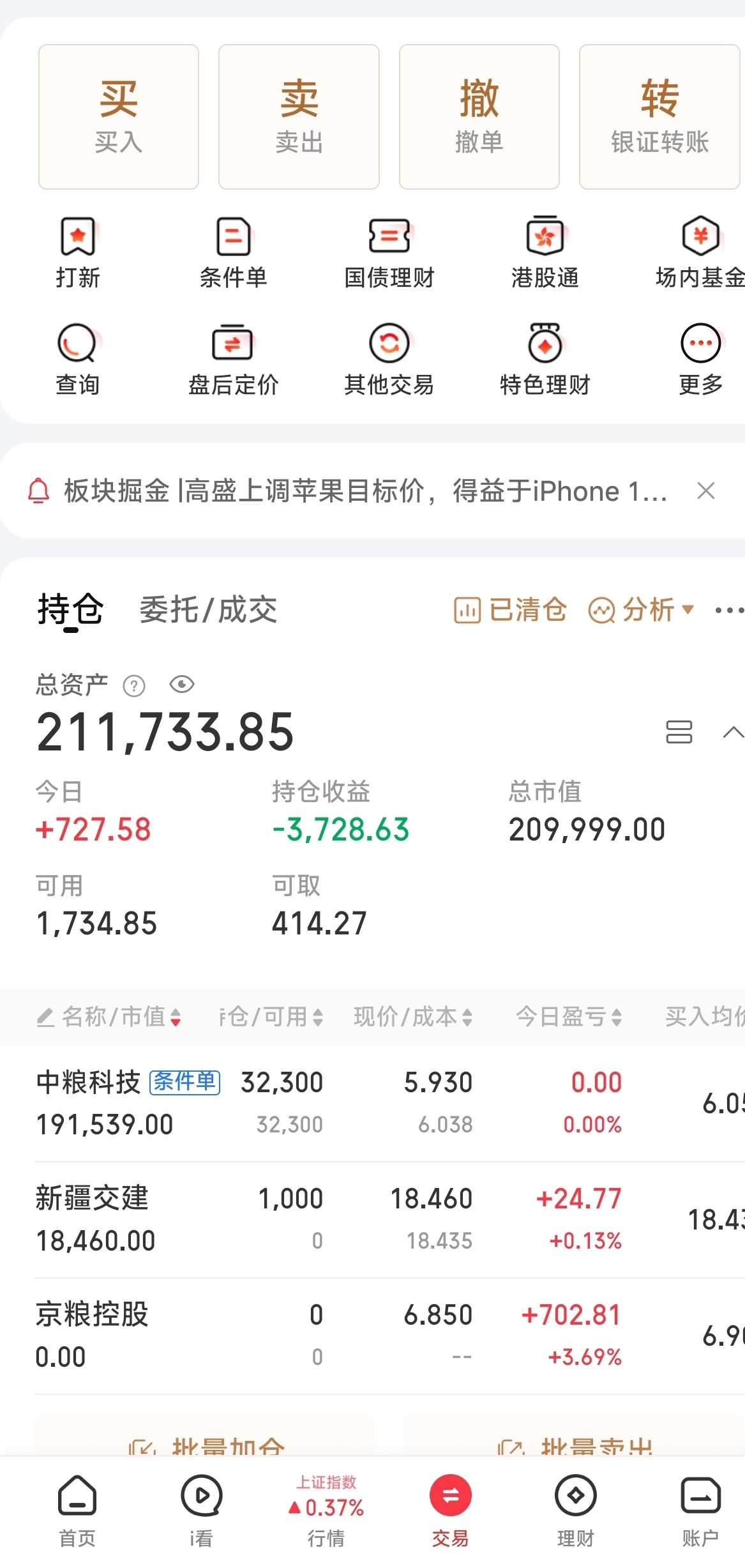$中粮科技(SZ000930)$ 委托好了5.8加仓20%,5.7加仓30%,5.6加仓40%。慢慢熬,慢慢磨,快点暴跌啊,小散最受不了就是温水煮青蛙。