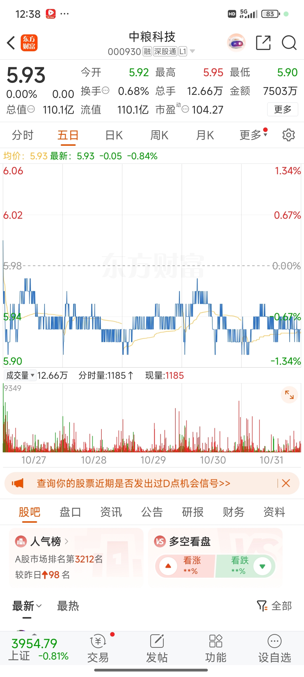 $中粮科技(SZ000930)$ 连续五天心电图,看来是死透了