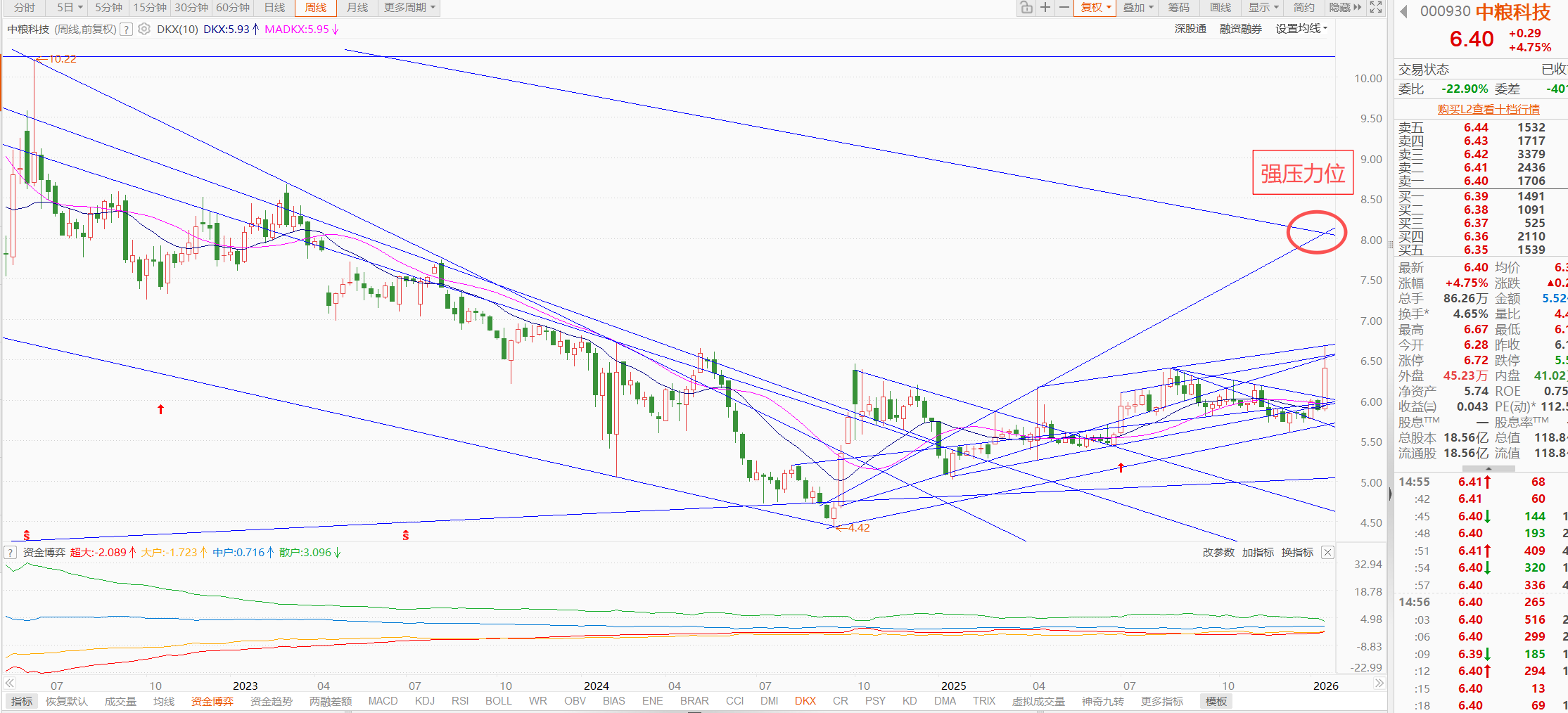 这周后三天不连板其实是好事,周线8块钱附近有一个超强压力位,这周如果撞上行情必定