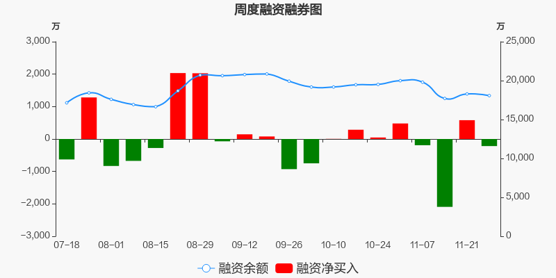 中关村本周(2025/11/24-2025/11/28)累计涨幅达4.23%,截至11月28日最新股价报收5.18元。从增量上来看,11月24日至11月27日融资买入交易规模1696.92万元,融资偿还规模1914.77万元,期内融资净偿还217.84万元。从存量上来看,截止11月30日,中关村融资融券余额1.81亿元,其中融资余额规模1.81亿元,融券余额规模11.76万元。