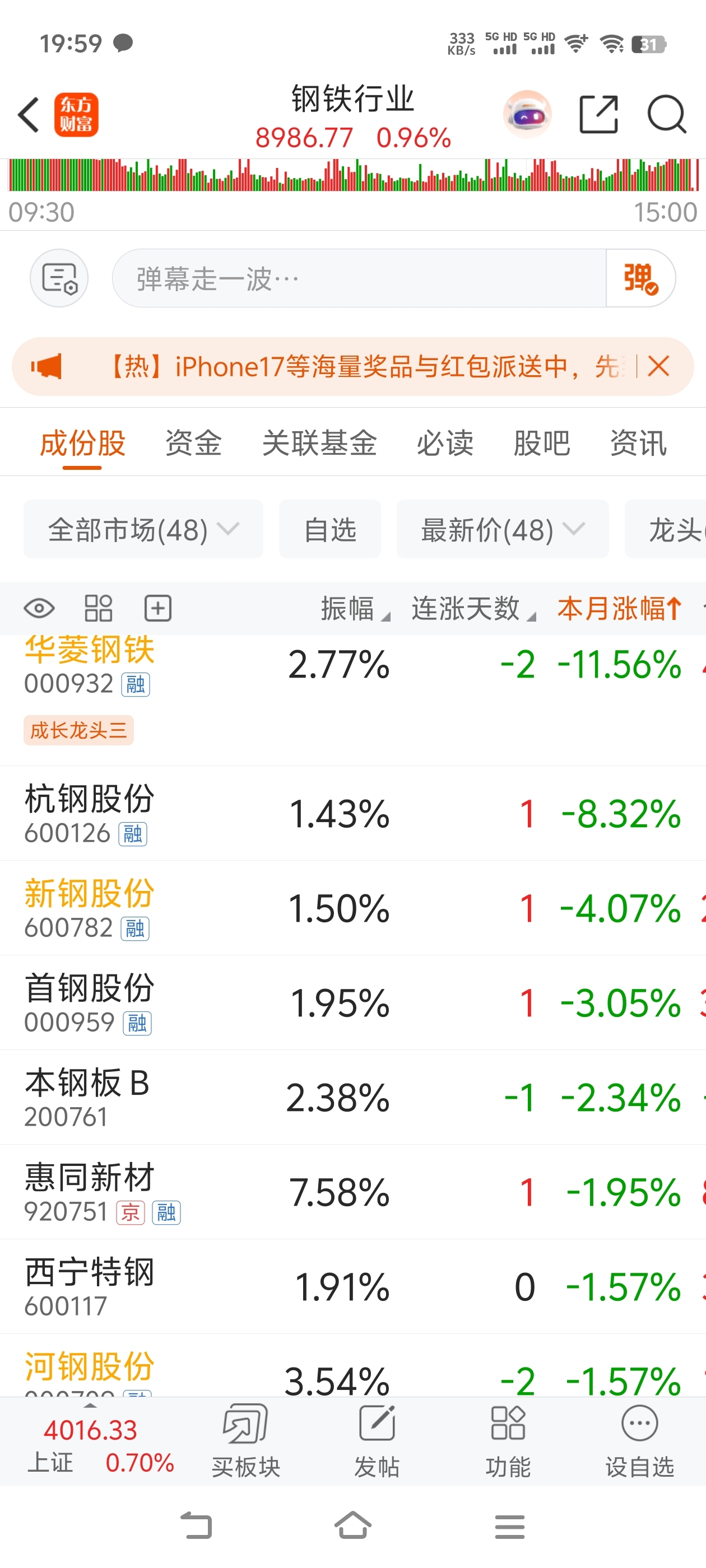 $华菱钢铁(SZ000932)$ 这个月在大盘那么好的情况下,喜提第一名