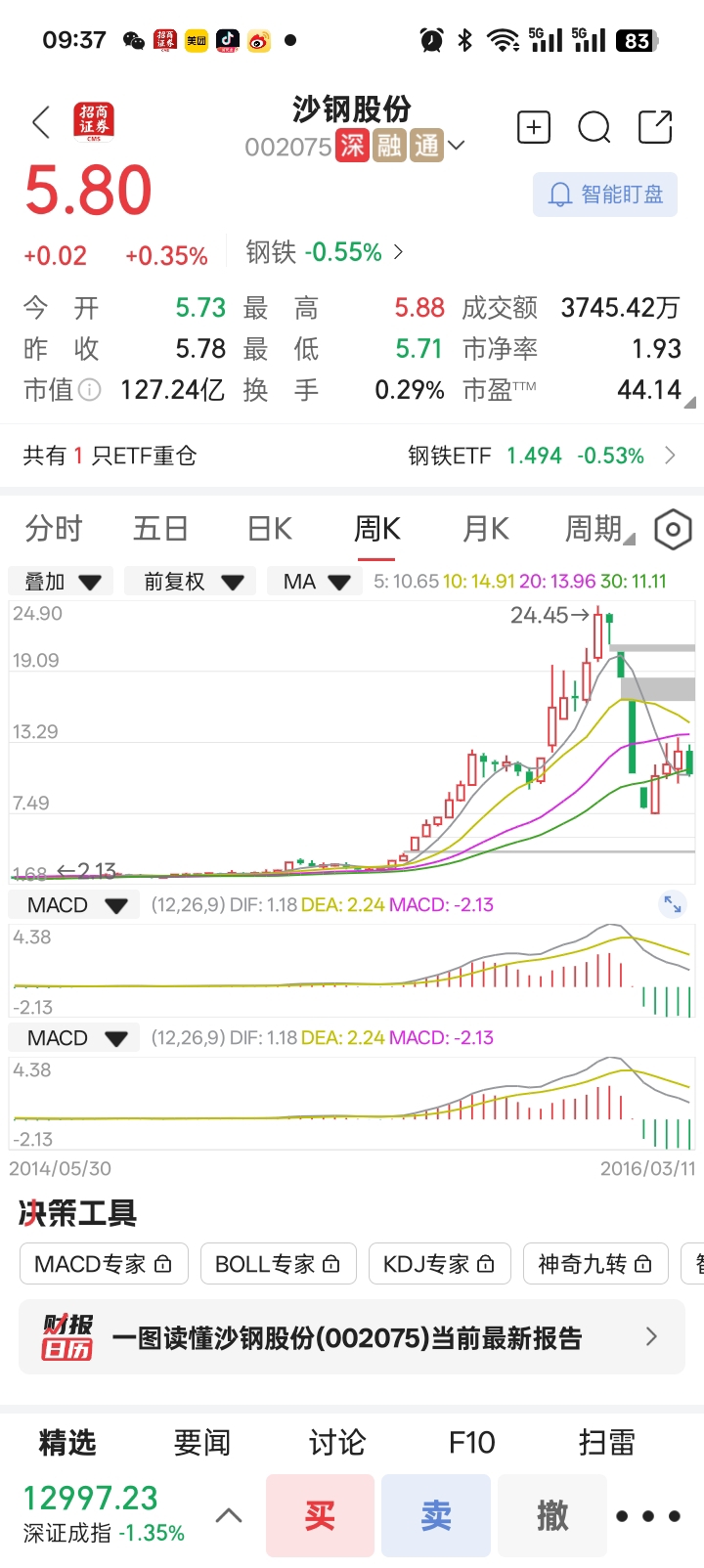 $华菱钢铁(SZ000932)$ 好钢不愁涨,上波牛市有只盈利才一二毛的钢铁股都涨到快25