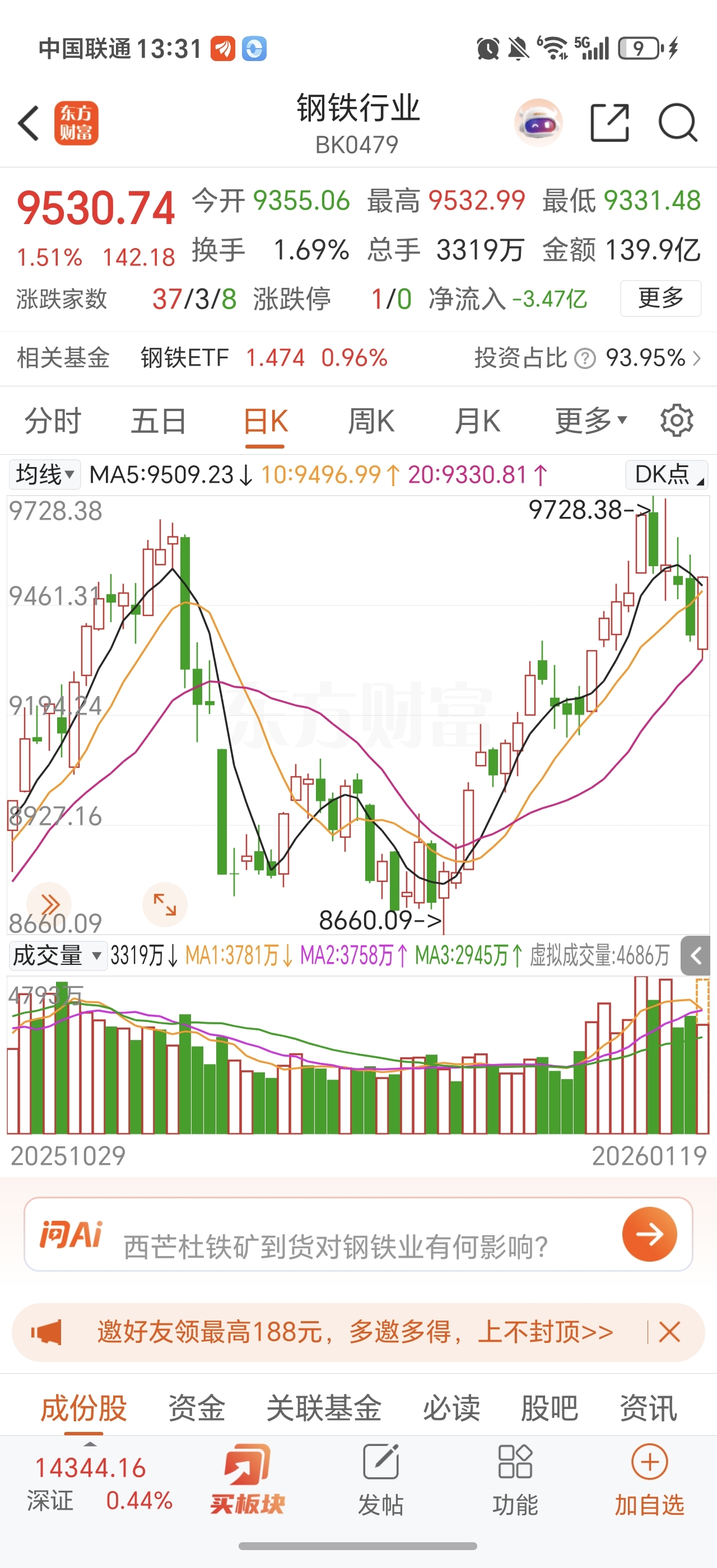 其他亏钱的钢铁,越涨越高!!有钱赚,分红好的价值股,慢慢涨!!