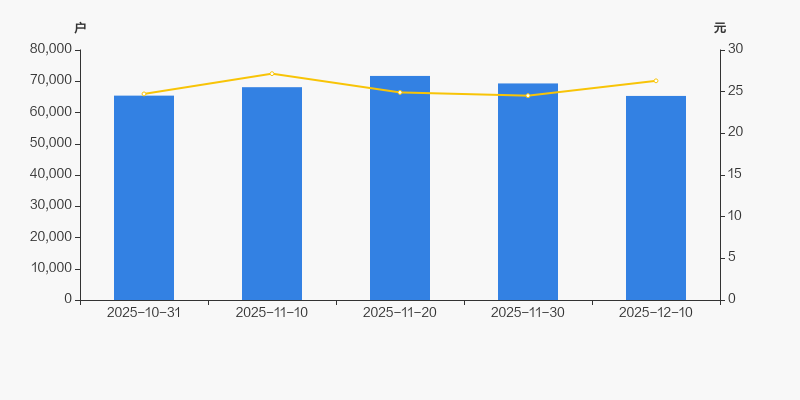 2025年10月31日至今,公司股东户数有所下降,区间跌幅为0.15%。2025年10月31日至2025年12月10日区间股价上涨6.35%。