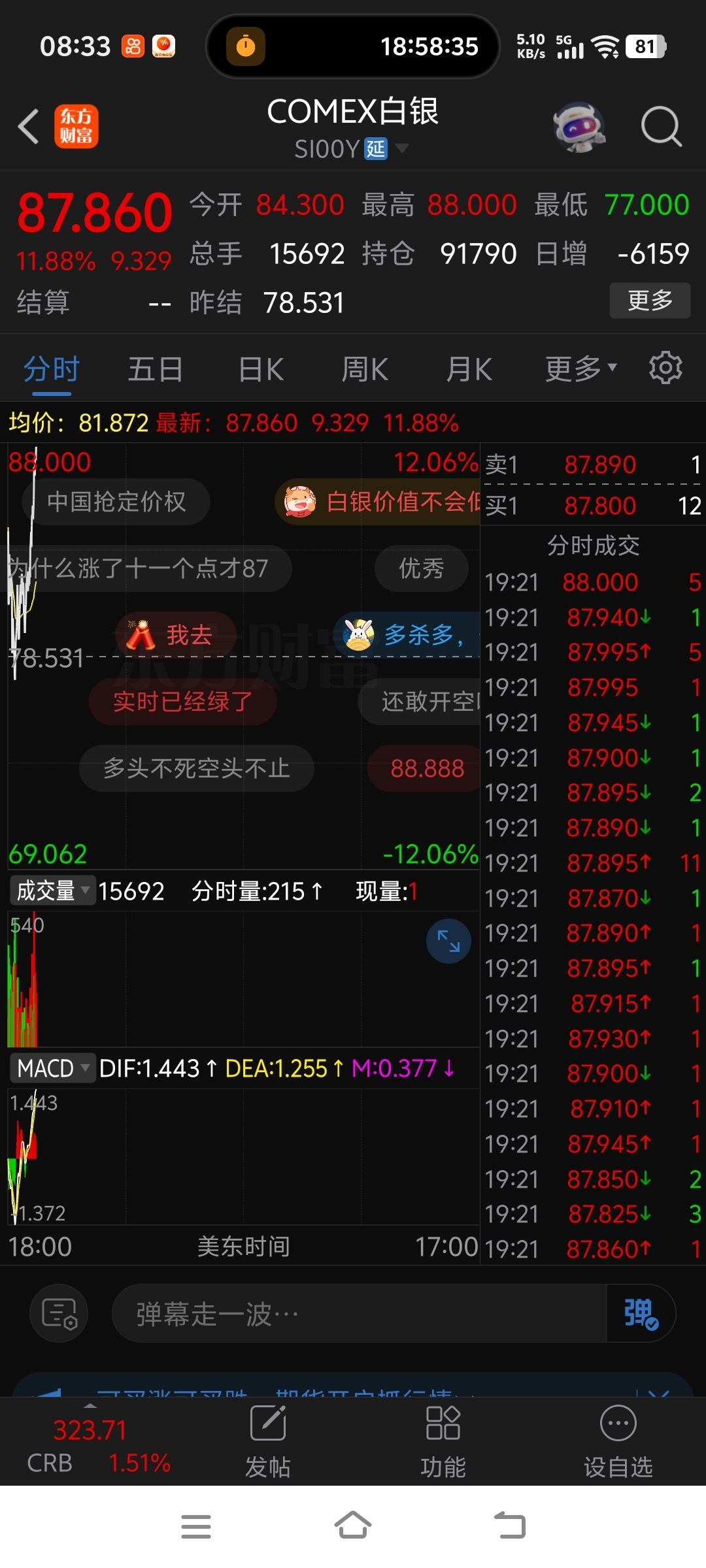 $神火股份(SZ000933)$ 昨天晚上热度排名第二的是大V A神写的一个帖子,预测今天白银会至少涨10个点以上。目前白银还真长了12个点以上,真是神人啊!还有一个是经济学家付费299的一个帖子的总结,我没截到屏。大家看今天神火股份和云铝股份如何走?$云铝股份(SZ000807)$