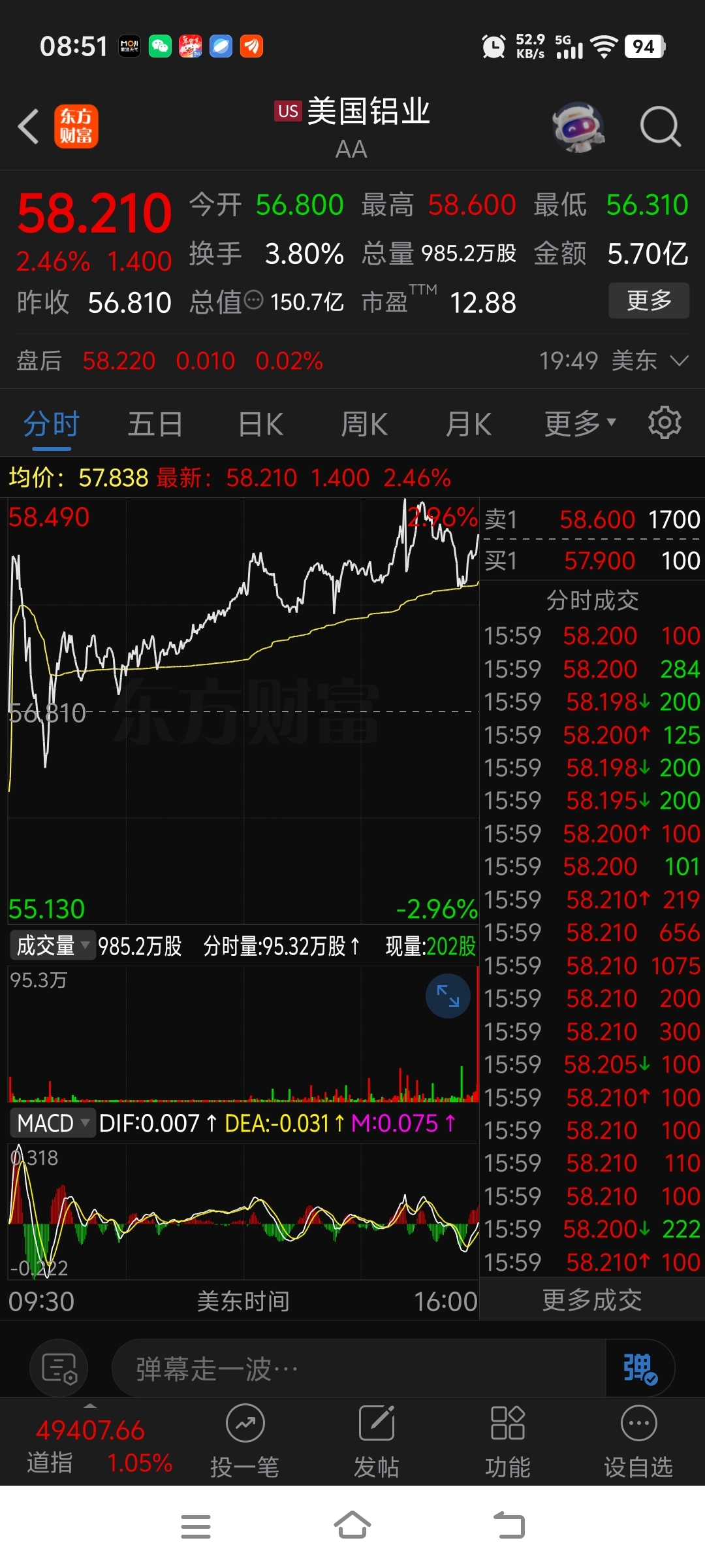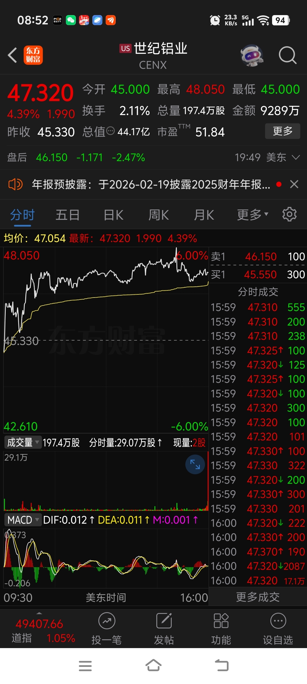今天早上目前美国纽约黄金上涨四个多点,纽约白银上涨8个多点;昨天晚上美股三大铝业公司最低上涨两个多点,最多的上涨7个多点,差一点又创了新高。