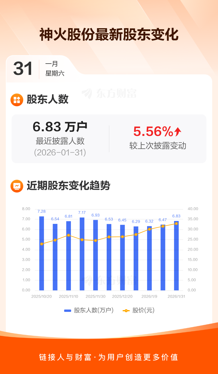 神火股份:截至1月31日最新股东户数6.83万户,较上期增加5.56%