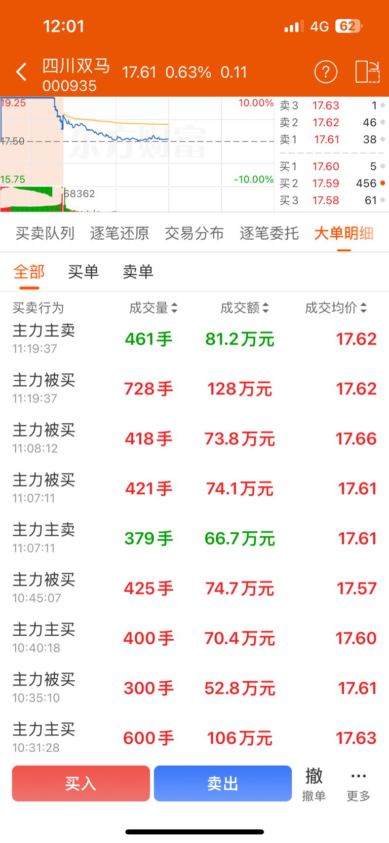$四川双马(SZ000935)$ 这什么鬼,这算是吸筹吗?主力买入但是股价下跌?