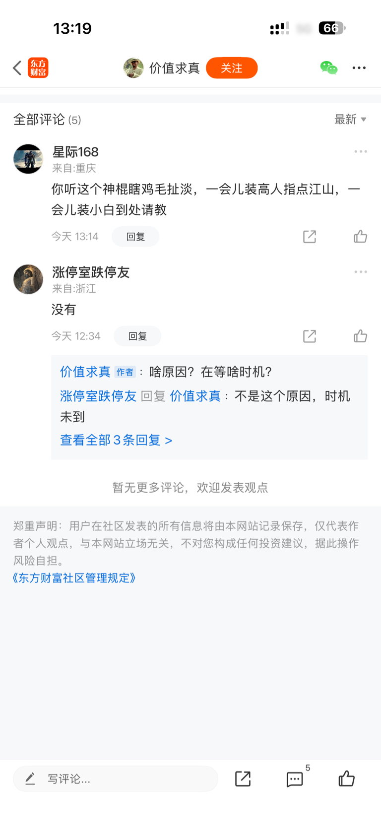 温馨提示: 1.根据《证券法》规定,禁止编造、传播虚假信息或者误导性信息,扰乱证券市场;2.用户在本社区发表的所有资料、言论等仅代表个人观点,与本网站立场无关,不对您构成任何投资建议。用户应基于自己的独立判断,自行决定证券投资并承担相应风险。《东方财富社区管理规定》
