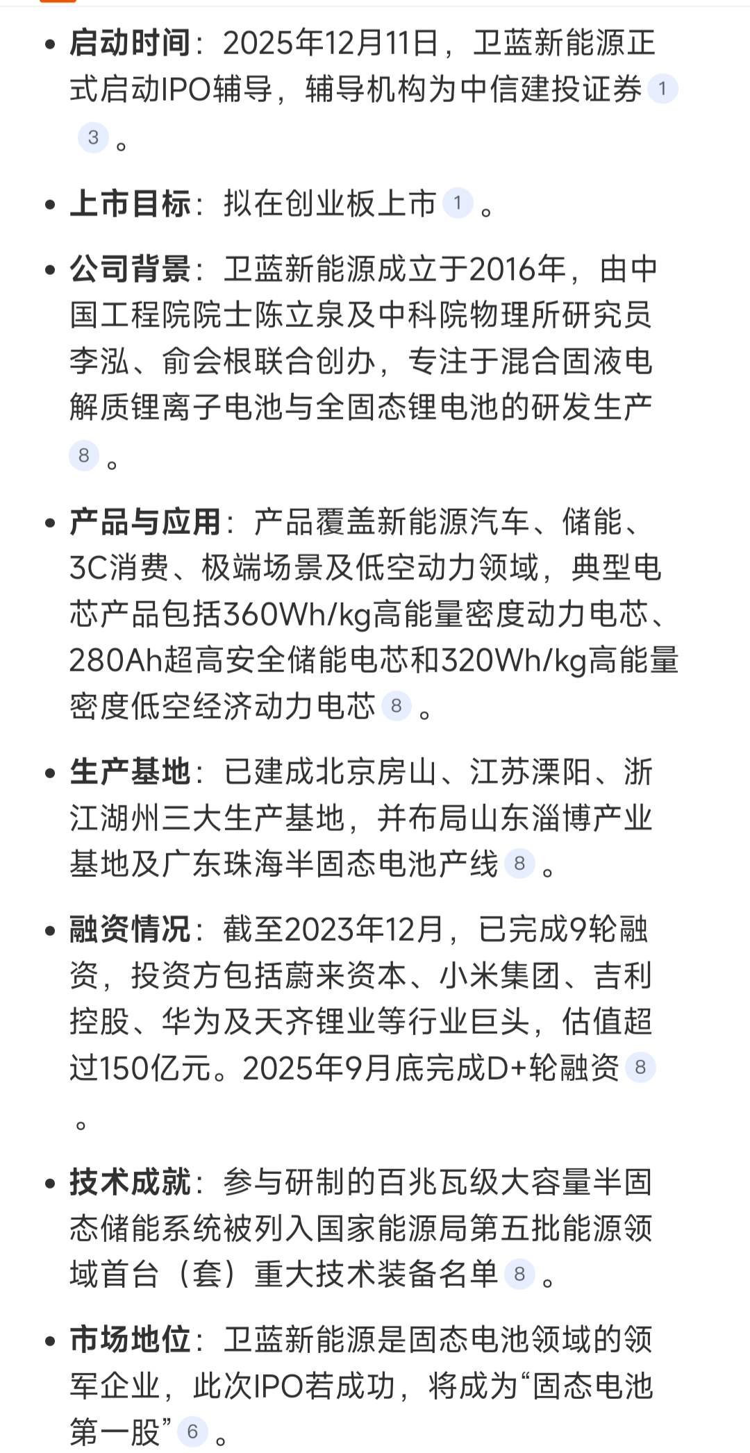 北京卫蓝新能源科技股份有限公司获上市辅导备案登记,拟在创业板IPO。四川双马管理义乌和谐锦弘基金持股比例1.8%