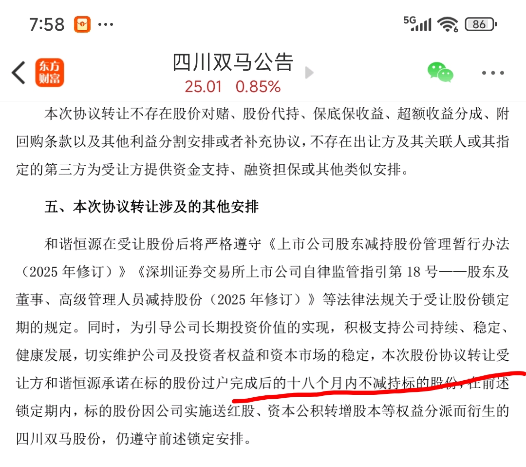 和谐恒源承诺标的股份过户完成后十八个月内不减持标的股份。