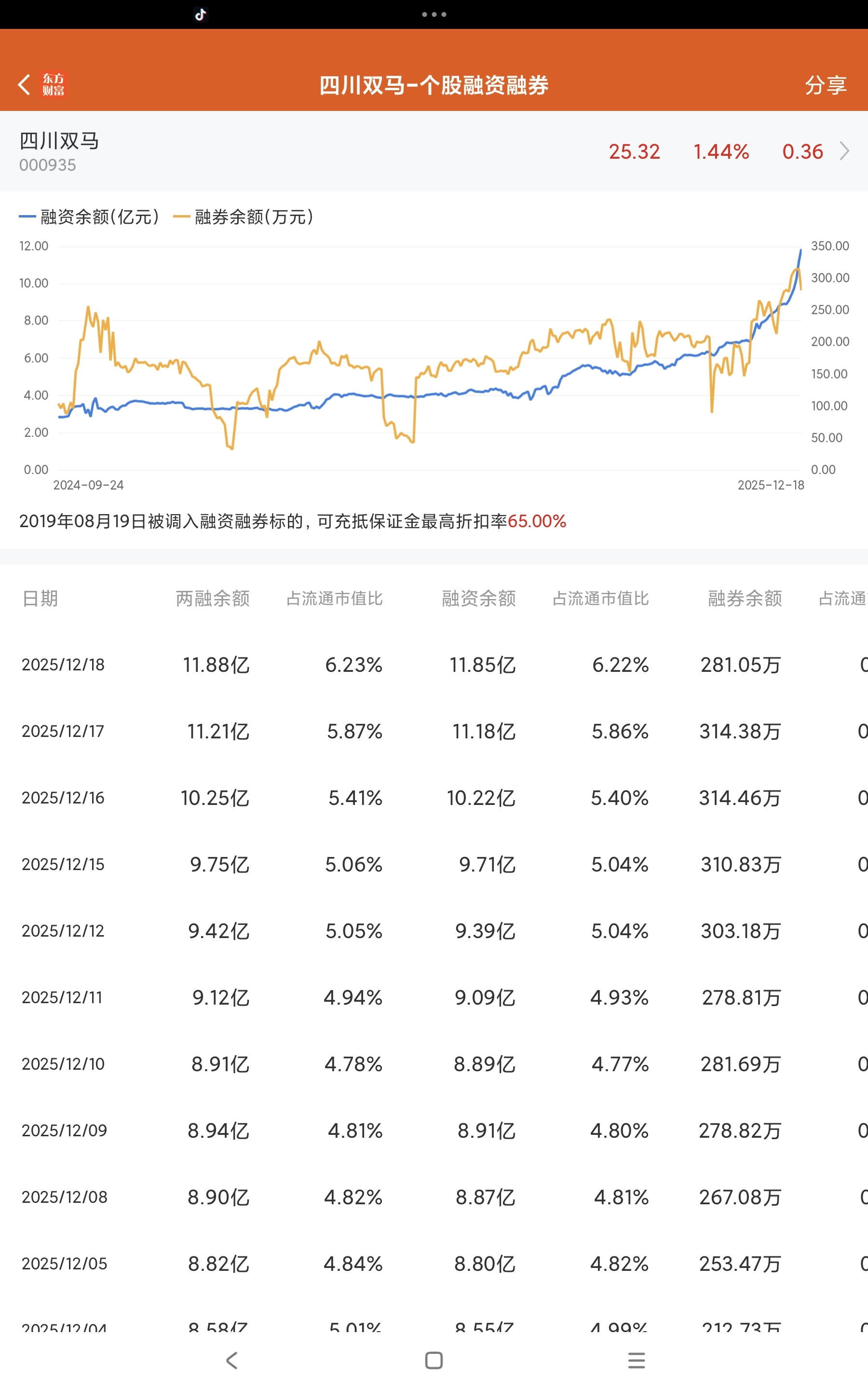 $四川双马(SZ000935)$ 怎么看?快速增长的融资余额!