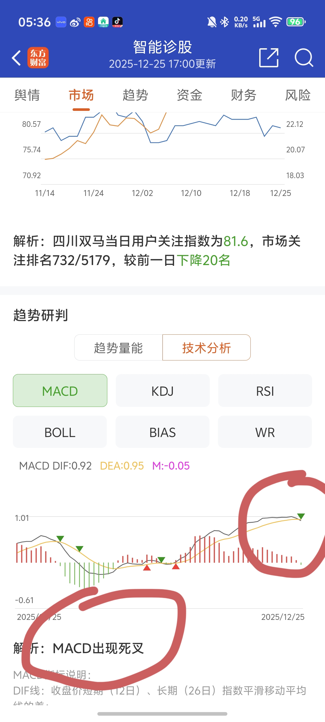 从技术面和资金面很确定这是个顶,高位滞涨,很可能补跌