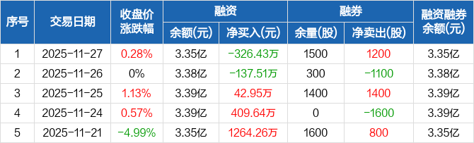 华西股份:融资净偿还326.43万元,融资余额3.35亿元(11-27)