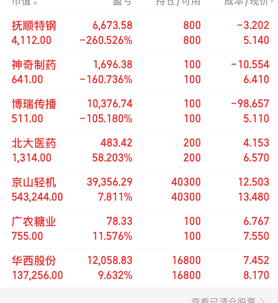 持仓两个股轮番表现,本来今天要出掉华西,下午忙其他事去了,忘记卖了,那就锁仓吧