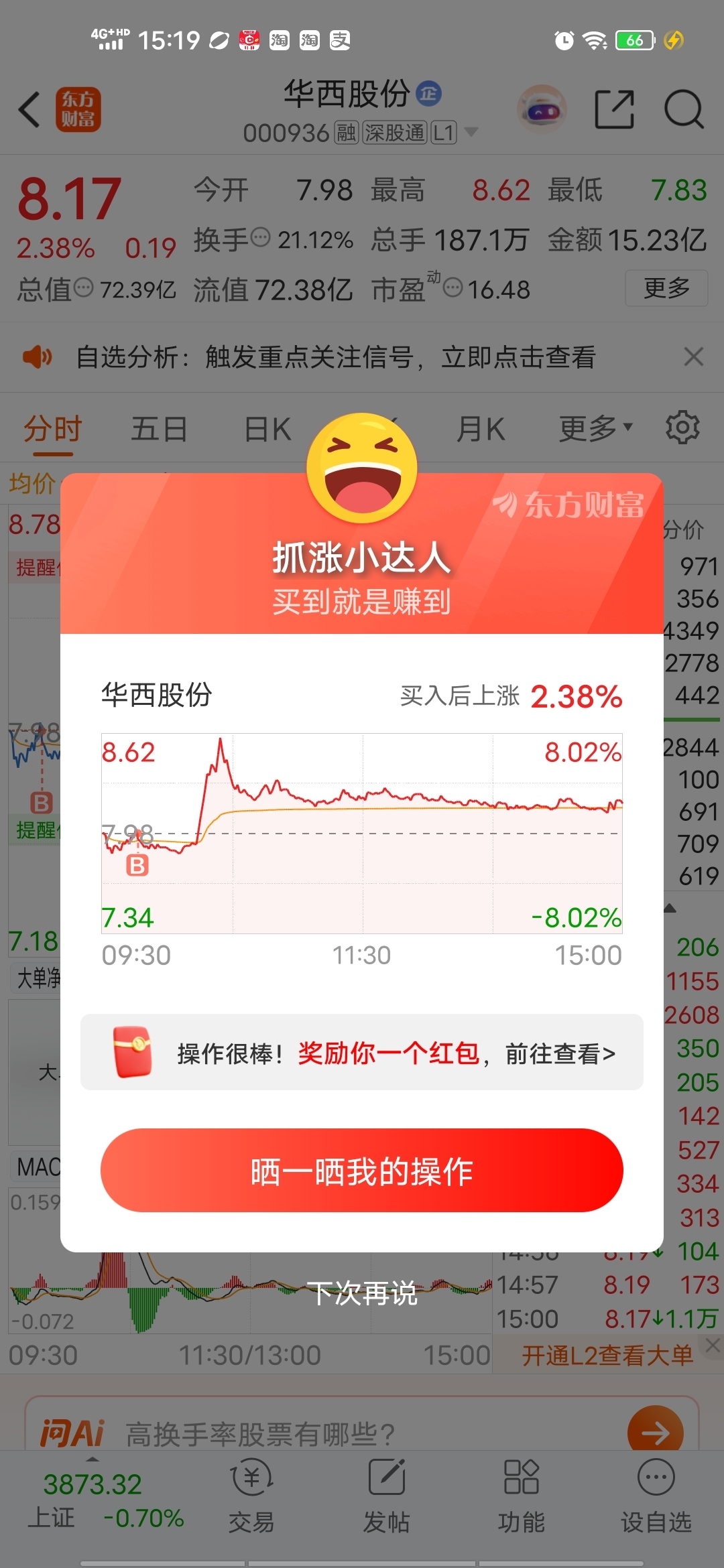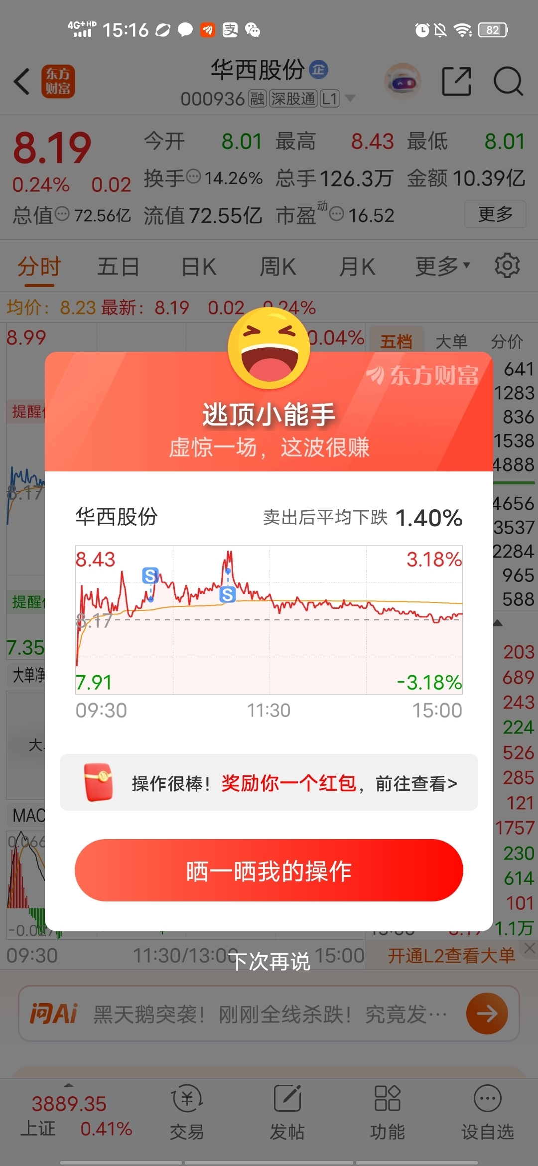 还是心急了,早上预估8.4元卖出,完全可以