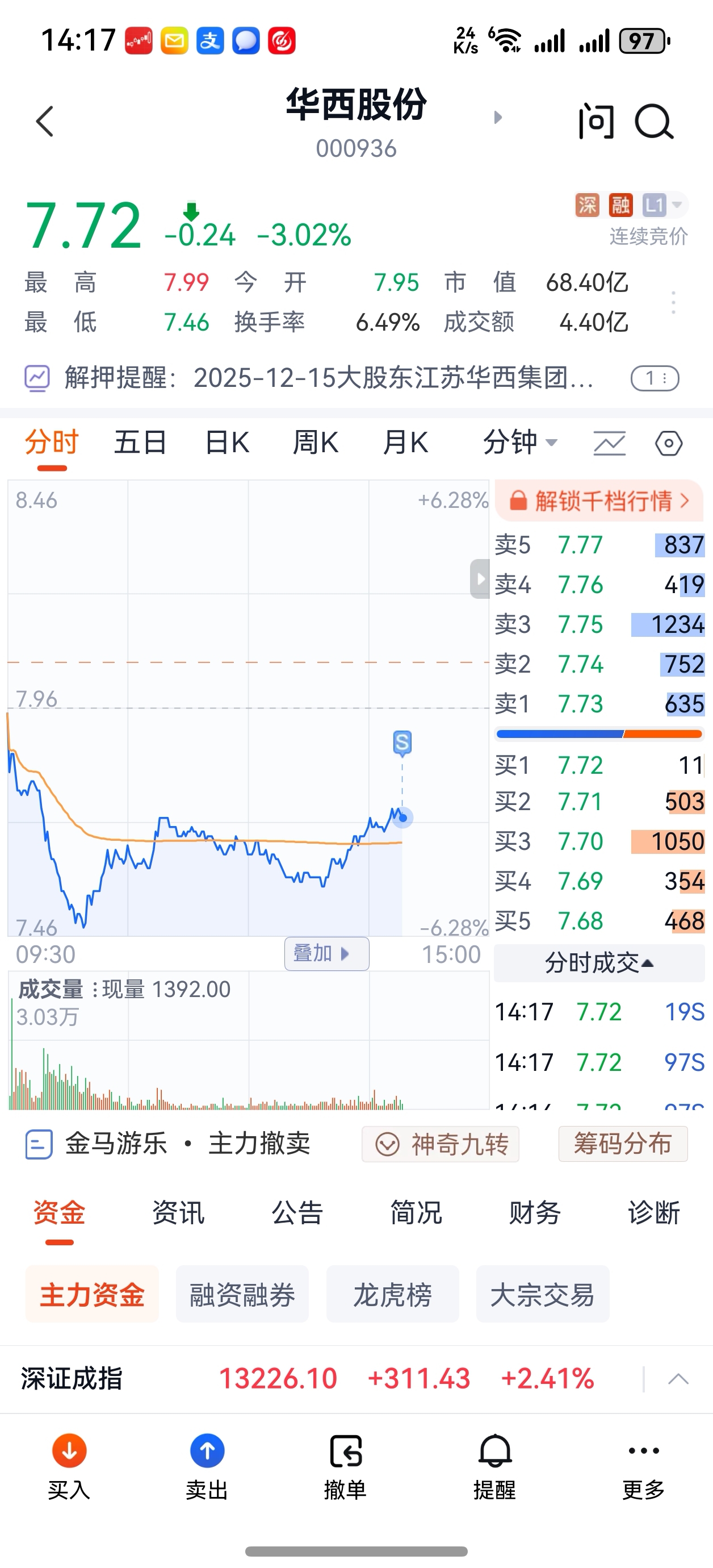 $华西股份(SZ000936)$ 昨天试错失败,割掉了