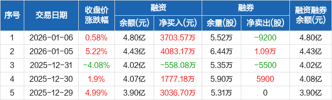 华西股份:融资净买入3703.57万元,融资余额4.8亿元(01-06)