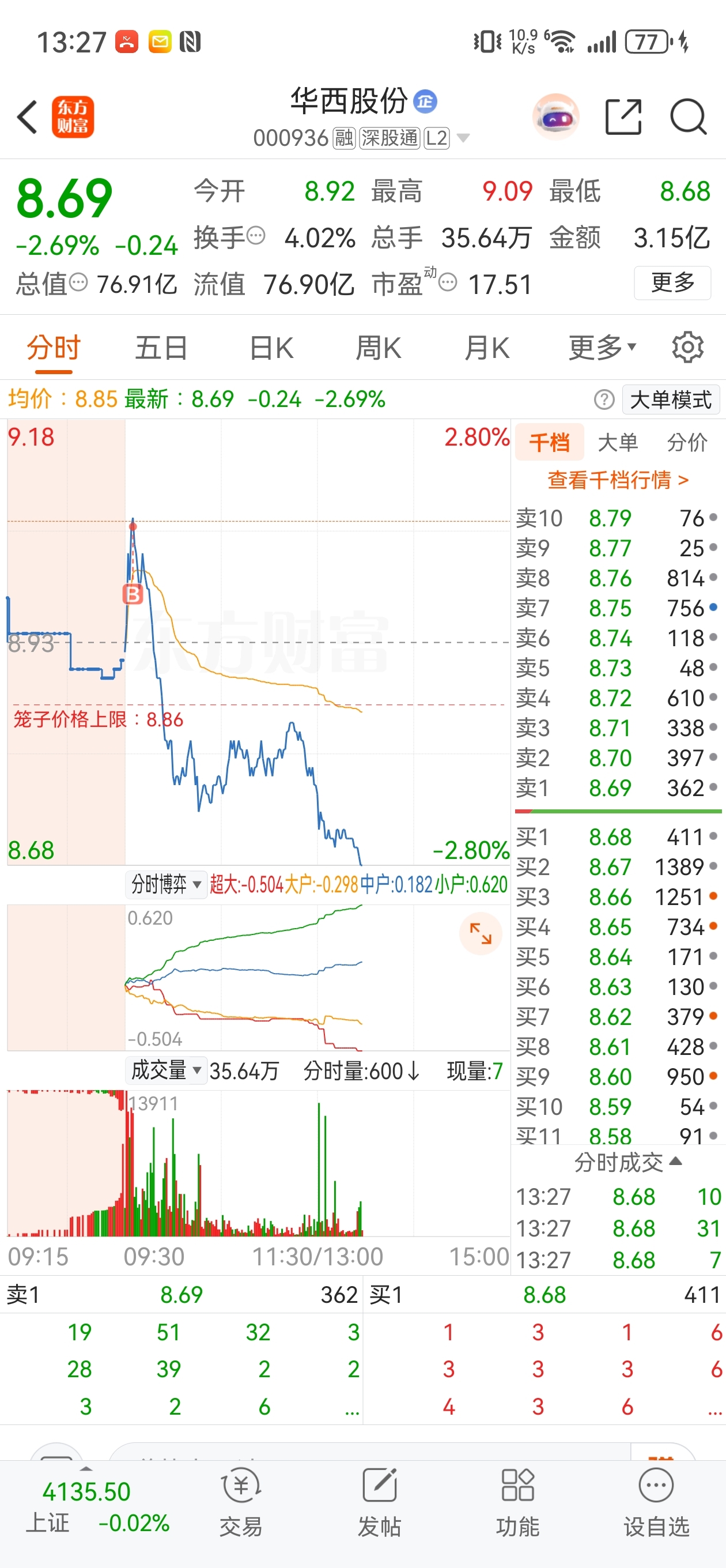 $华西股份(SZ000936)$ 如何精准抄顶。。。