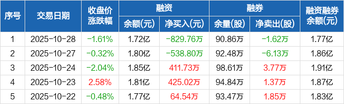 冀中能源:融资净偿还829.76万元,融资余额1.72亿元(10-28)