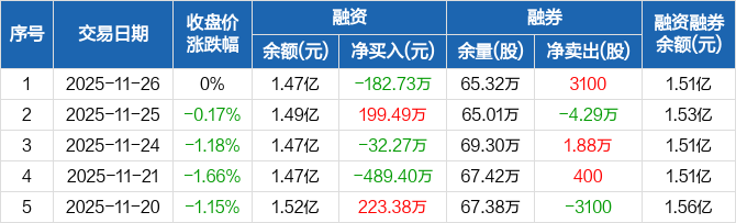 冀中能源:融资净偿还182.73万元,融资余额1.47亿元(11-26)