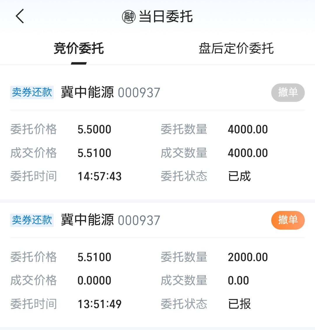 $冀中能源(SZ000937)$ 早下单的5.51没卖掉,尾盘5.50的委托反而5.51成交了