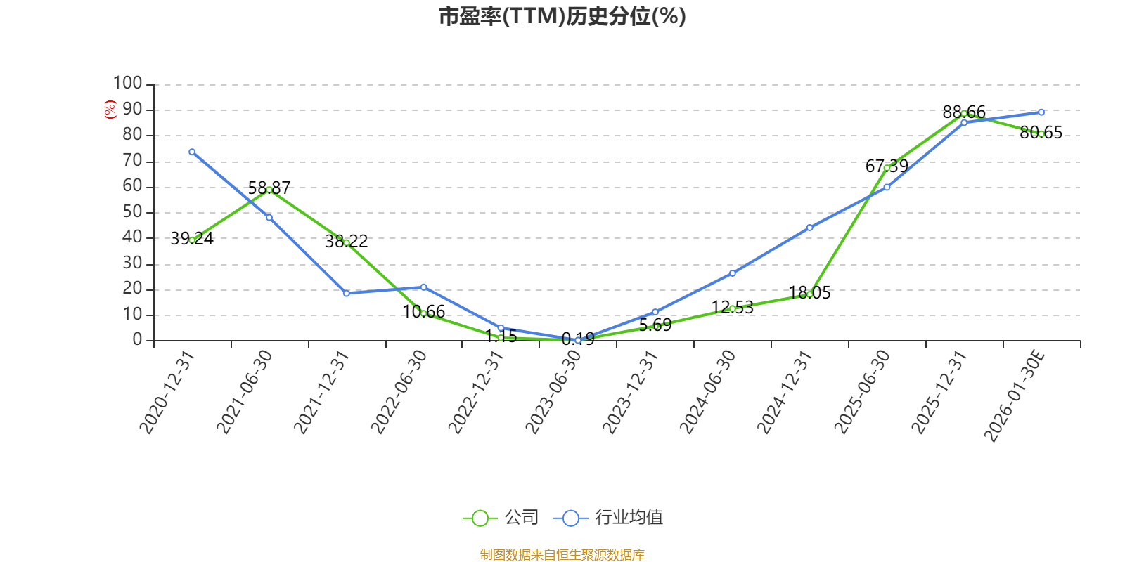 市盈率、市净率为负时,不显示当期分位数,会导致折线图中断。