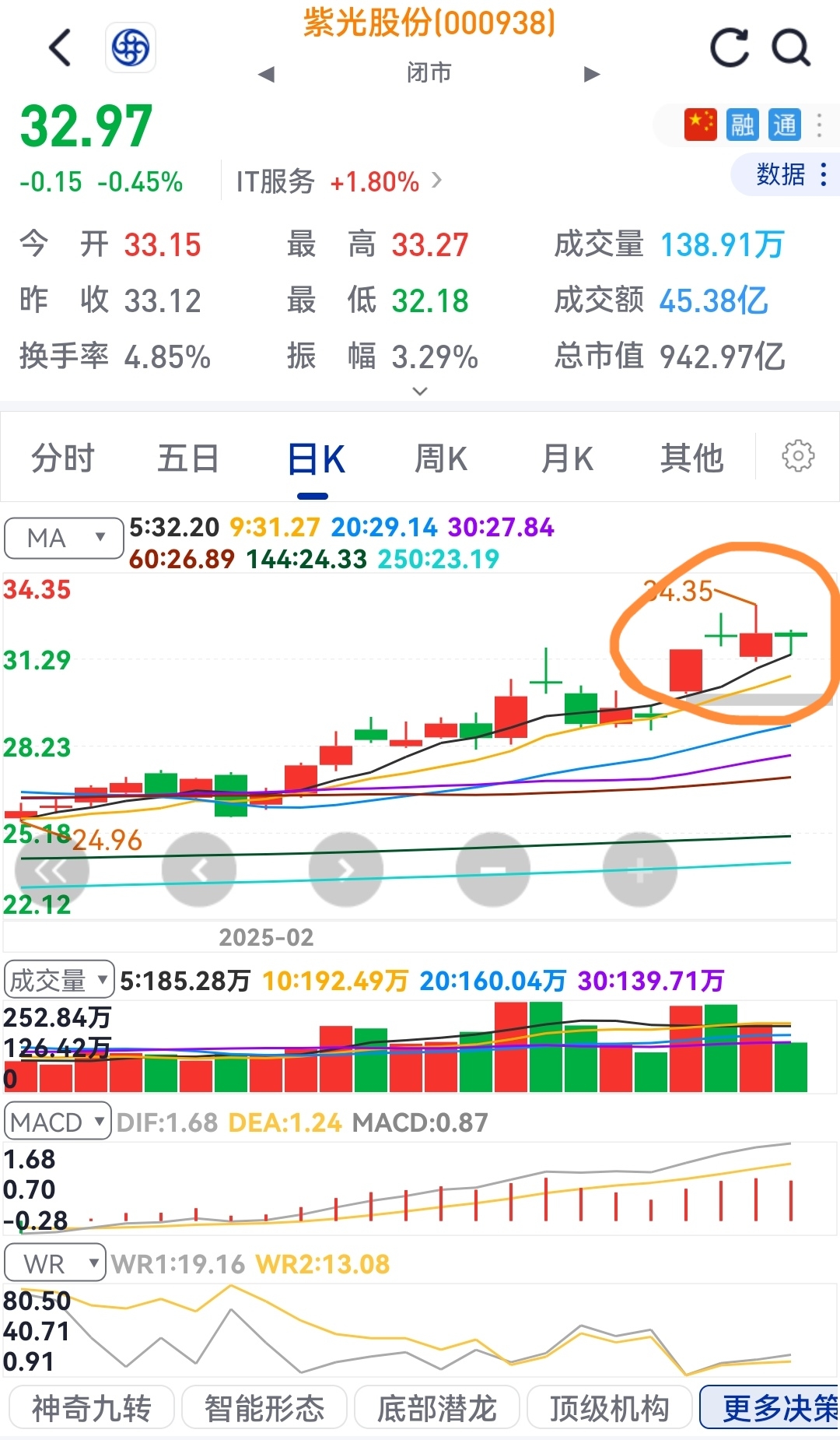 $紫光股份(SZ000938)$ 标准“喜鹊闹梅”经典形态嘛:第一天必须涨停,后三天小阴小阳,在一个平台上且量能萎缩。预计最快明天开启主升行情,形态形成后第一波基本上涨幅在50%+,因此看到50+,后续经过短暂调整后仍有大行情。期间最好不要做T,容易T飞。留贴验证!