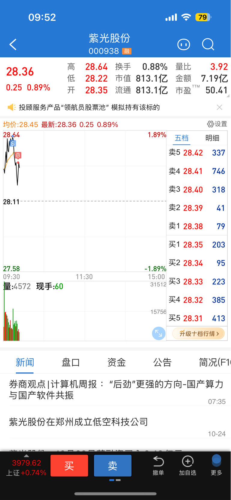 $紫光股份(SZ000938)$ 今天挂低了,做T失败