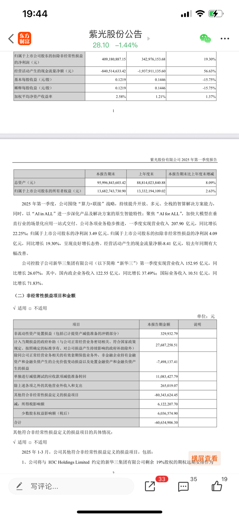 新华三的营业收入每个季度都是增长的。净利润也是增加的