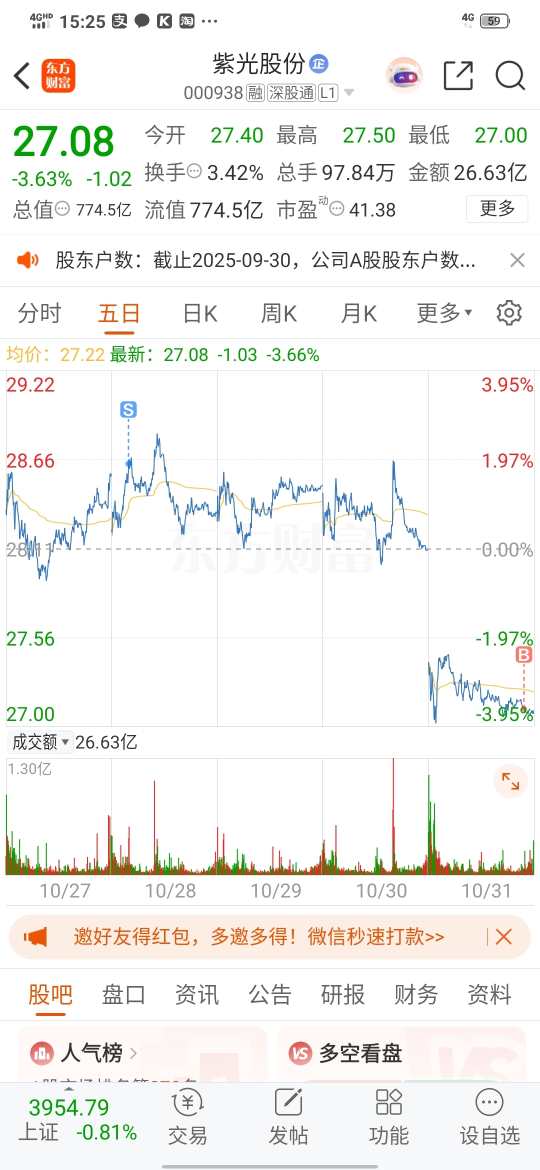 $紫光股份(SZ000938)$ 前两天踢出的仓位,今天补点进去