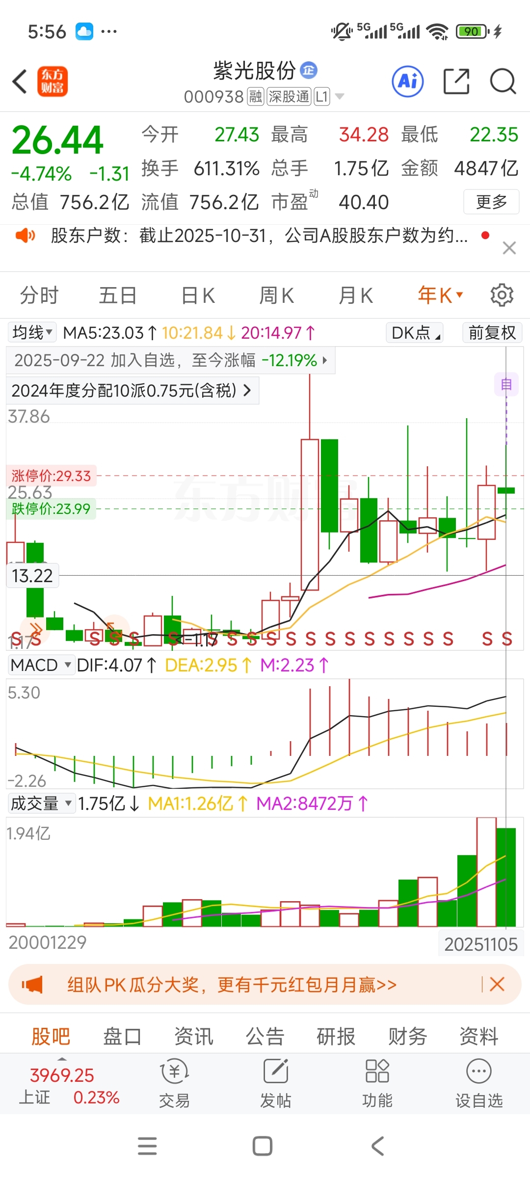 $紫光股份(SZ000938)$ 这个应该是科技股第一了吧 估计科技里面就他一只是年涨幅负的
