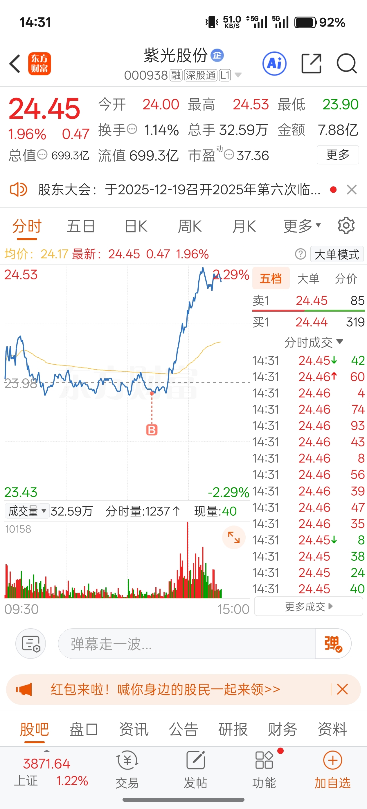 $紫光股份(SZ000938)$ 还行给力点