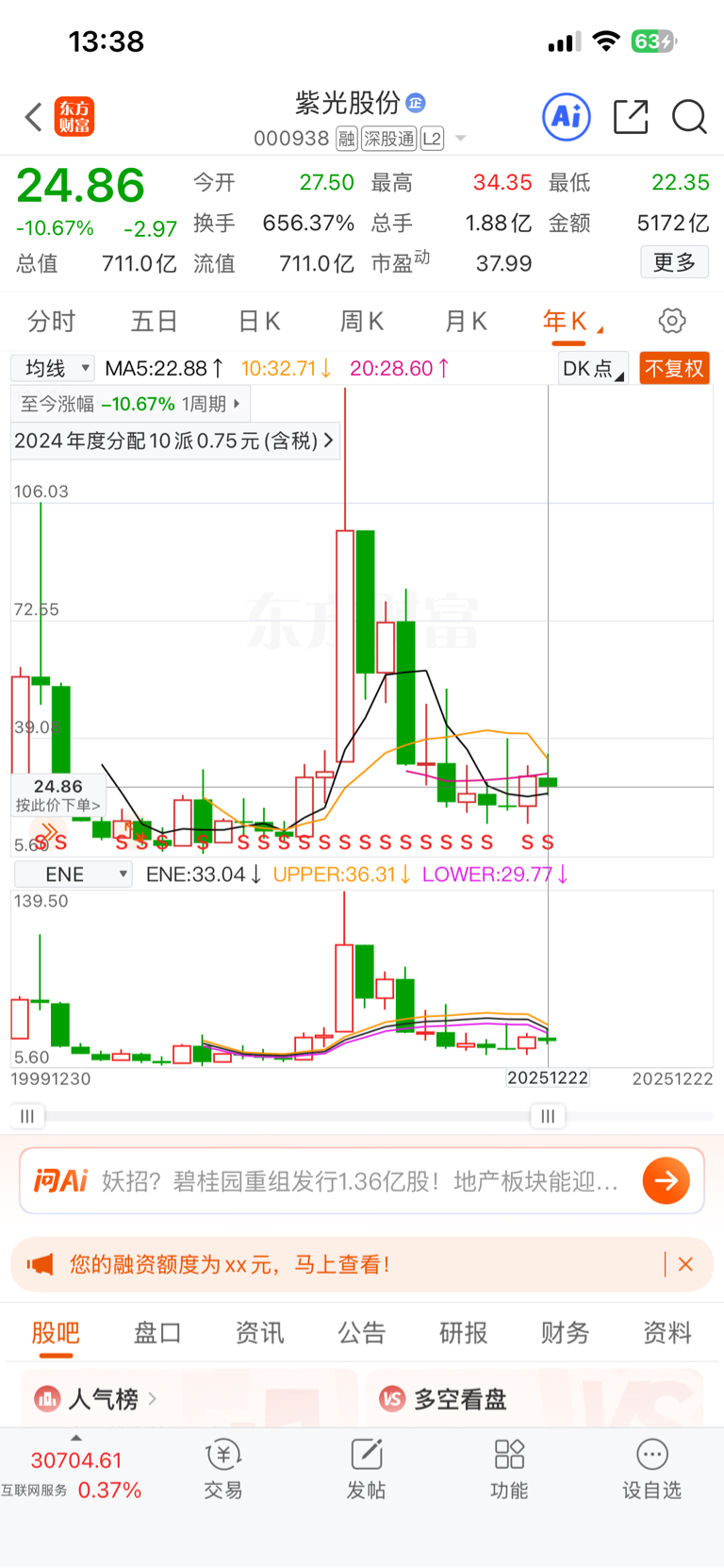 $紫光股份(SZ000938)$ 紫光你是CPO概念吗?你生产的400 G,800 G是假的吧!CPO的年线涨了109%,你还跌了12%,谁把他列入CPO概念股的,我要打假