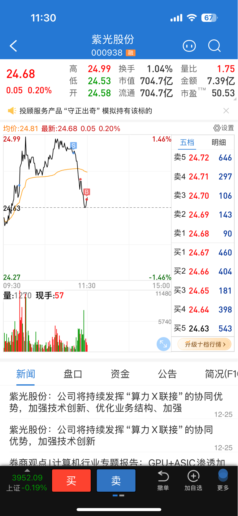 $紫光股份(SZ000938)$ 感谢砸盘选手,本来还担心卖飞了