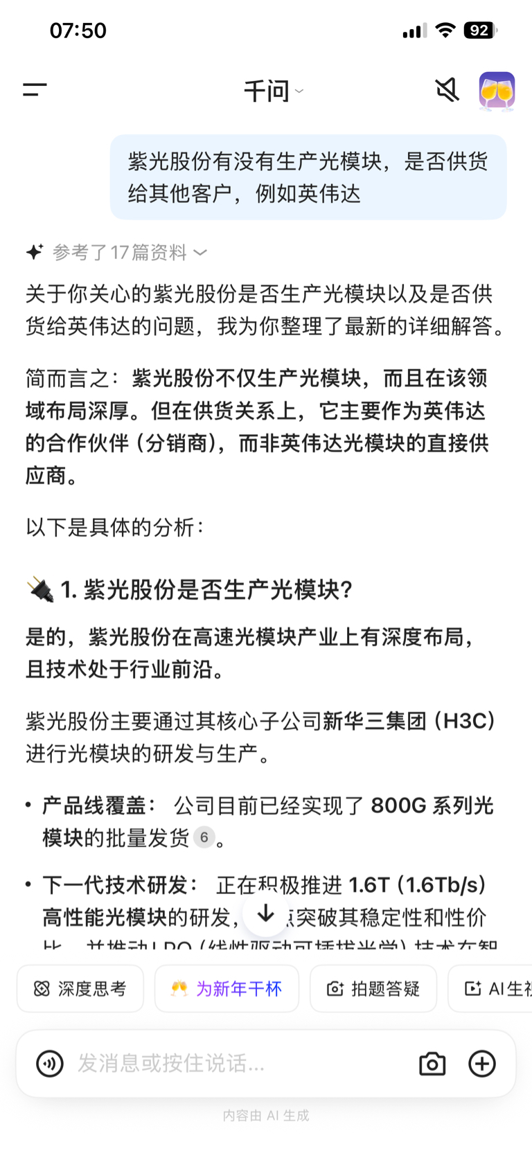 $紫光股份(SZ000938)$ 紫光股份关于生产光模块和供应商合作关系