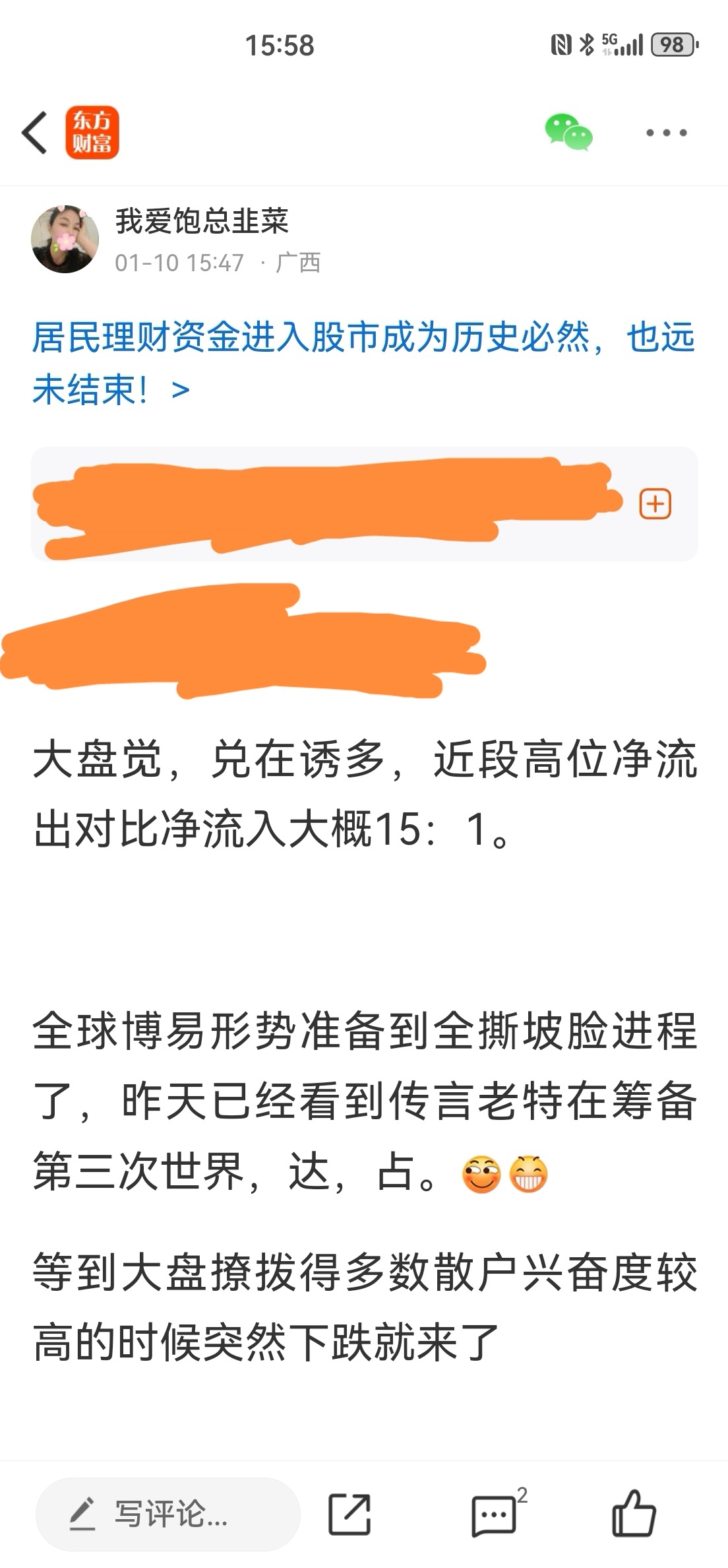 温馨提示: 1.根据《证券法》规定,禁止编造、传播虚假信息或者误导性信息,扰乱证券市场;2.用户在本社区发表的所有资料、言论等仅代表个人观点,与本网站立场无关,不对您构成任何投资建议。用户应基于自己的独立判断,自行决定证券投资并承担相应风险。《东方财富社区管理规定》
