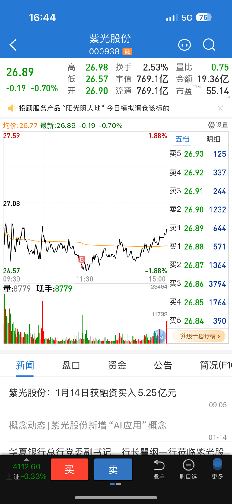$紫光股份(SZ000938)$ 感谢主力,今天又让我买到了差不多最低价