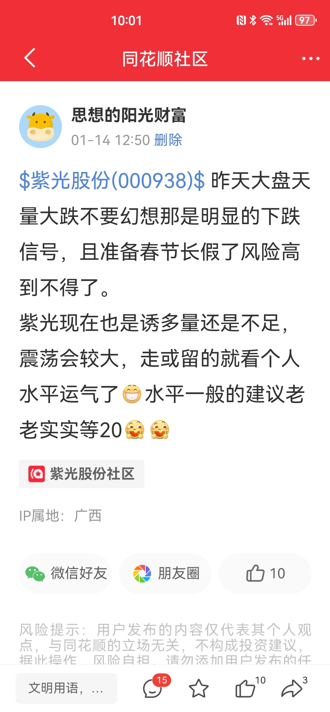 温馨提示: 1.根据《证券法》规定,禁止编造、传播虚假信息或者误导性信息,扰乱证券市场;2.用户在本社区发表的所有资料、言论等仅代表个人观点,与本网站立场无关,不对您构成任何投资建议。用户应基于自己的独立判断,自行决定证券投资并承担相应风险。《东方财富社区管理规定》