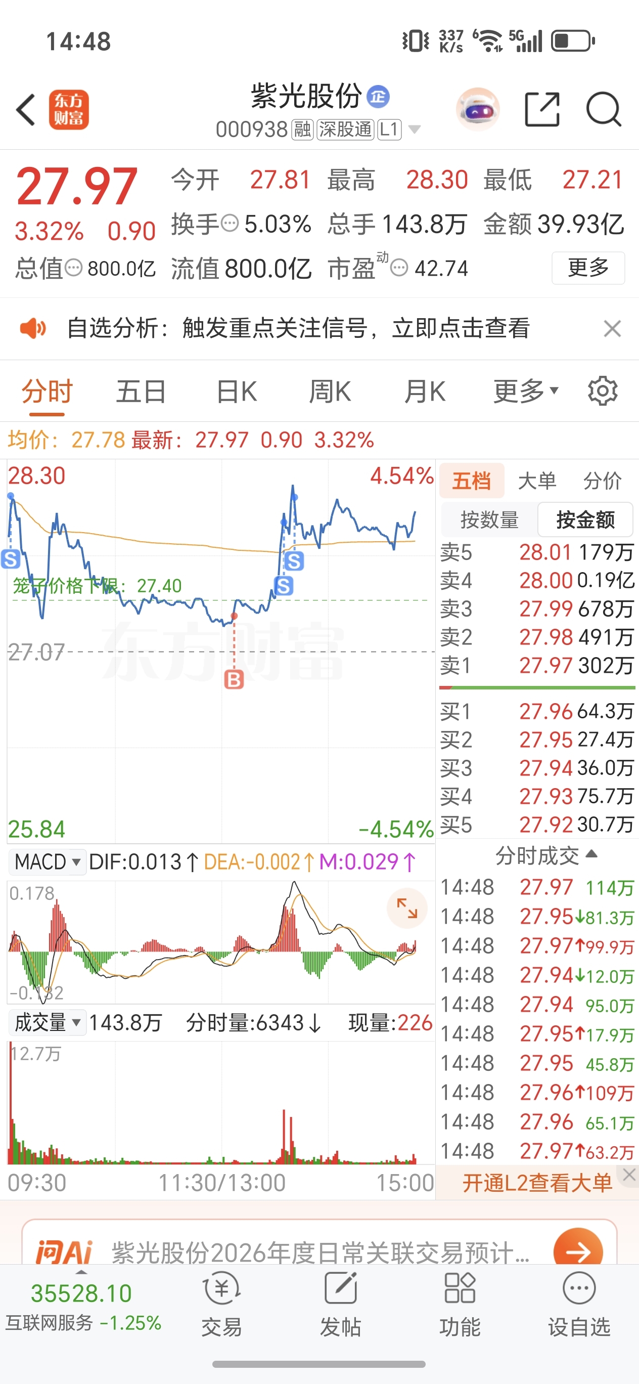 $紫光股份(SZ000938)$ 明天低开买回来